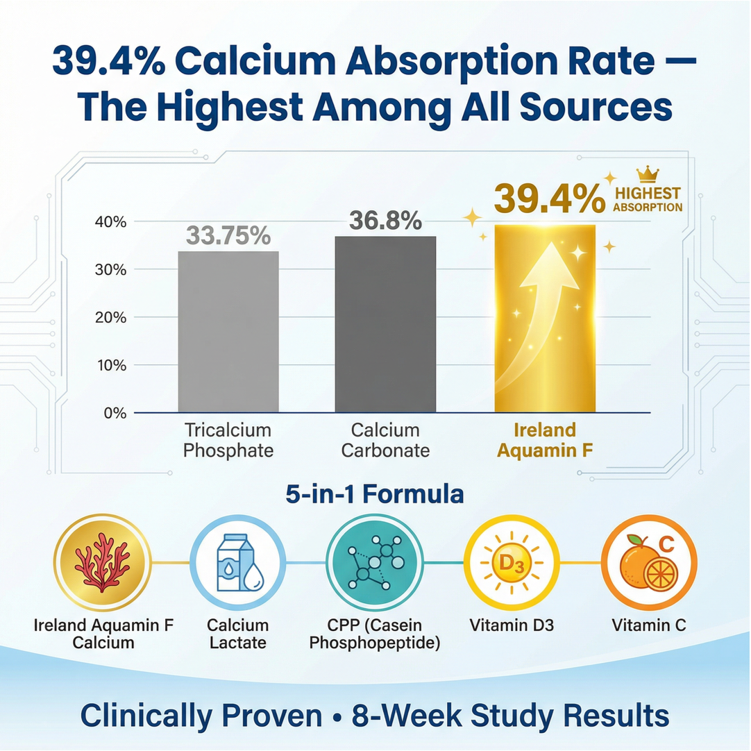 39.4% absorption rate with Ireland Aquamin F — clinically proven to outperform all other calcium sources.