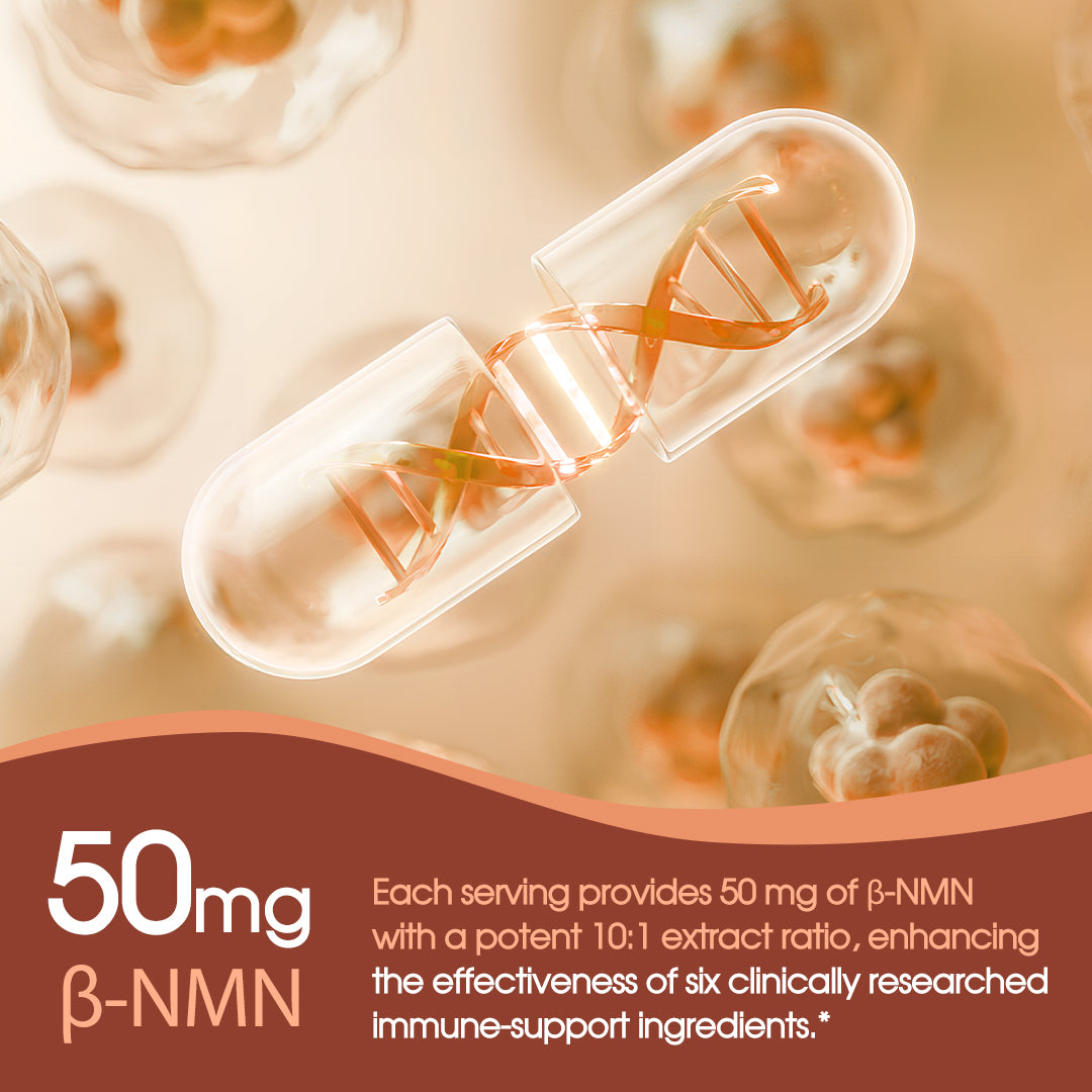 IMMUNE is a breakthrough immune-enhancing supplement composed of natural ingredients, such as non-GMO soybean lecithin and β-NMN nicotinamide mononucleotide, which help activate protective immune cells. IMMUNE also contains powerful plant extracts, such as Ganoderma lucidum extract, Cordyceps sinensis, Ginseng Extract and American Ginseng Extract, as well as Propolis, a natural bee-derived ingredient that has been studied for its immune-boosting benefits.