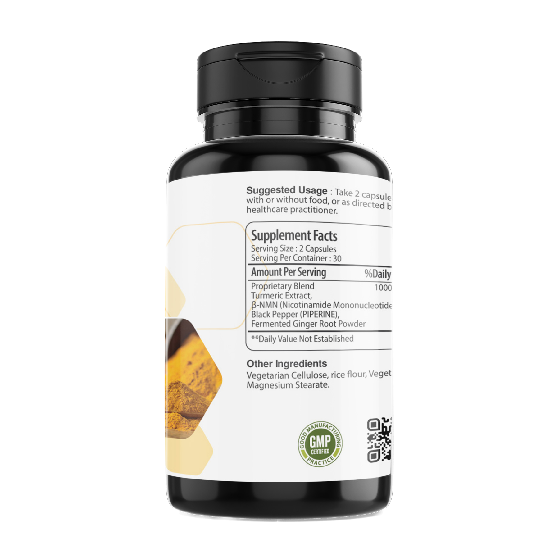 1. TURMERIC incorporates of β-NMN, a potent compound known for its ability to enhance cellular energy production, promoting vitality and overall well-being.